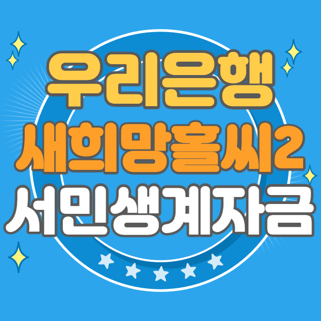 안녕하세요 모카도톨입니다. 이번 시간에는 서민과 금융취약계층에게 생계자금을 지원하는 대출인 우리은행의 새희망홀씨2 대출에 대해서 알아보겠습니다. 신용등급이나 소득이 낮으신 분들이 제1 금융을 통해 대출을 받을 수 있는 방법이기 때문에 꼭 한번 확인해 보시기 바랍니다.