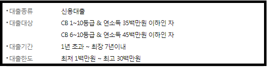 - CB 1~10등급 & 연소득 35백만 원 이하인 자