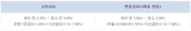 - 최소 1백만 원, 최대 50백만 원 한도 내에서 대출 가능