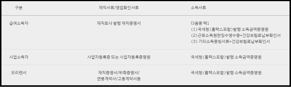 - 기타 대출조건이나 소득종류에 따라 추가서류가 필요할 수 있음