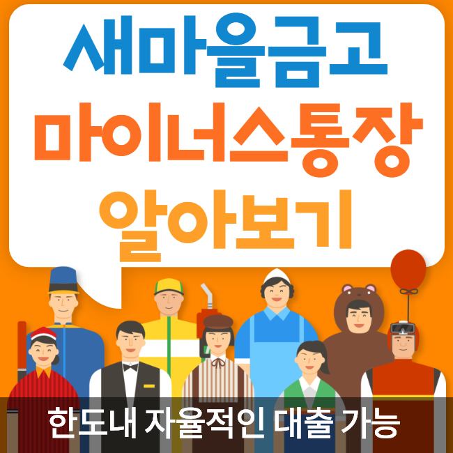 안녕하세요 모카도톨입니다. 이번 시간에는 새마을금고의 마이너스통장에 대해서 알아보려고 합니다. 마이너스통장은 통장으로 약정한 금액 내에서 언제든지 현금처럼 대출금을 빌렸다 갚을 수 있는 대출의 방식이라 할 수 있는데요, 이는 현금 유동성이 높고 대출금을 사용한 기간에 대해서만 이자를 지불하기 때문에 그 용도가 매우 다양합니다. 때문에 직장인부터 개인사업자까지 매우 넓은 직업적 스펙트럼을 가지고 있다고 보시면 됩니다.