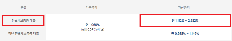 카카오뱅크 전세자금 대출의 이자율에 대해서 알아보도록 하겠습니다. 이자율(금리)는 [대출금리 = 기준금리 + 가산금리 - 우대금리]로 계산하여 최저금리 연 2.172%에서 최고금리 연 3.612%로 정해지고 있습니다. 이때 정해지는 금리는 거래조건 및 신용등급에 따라 달라질 수 있습니다.