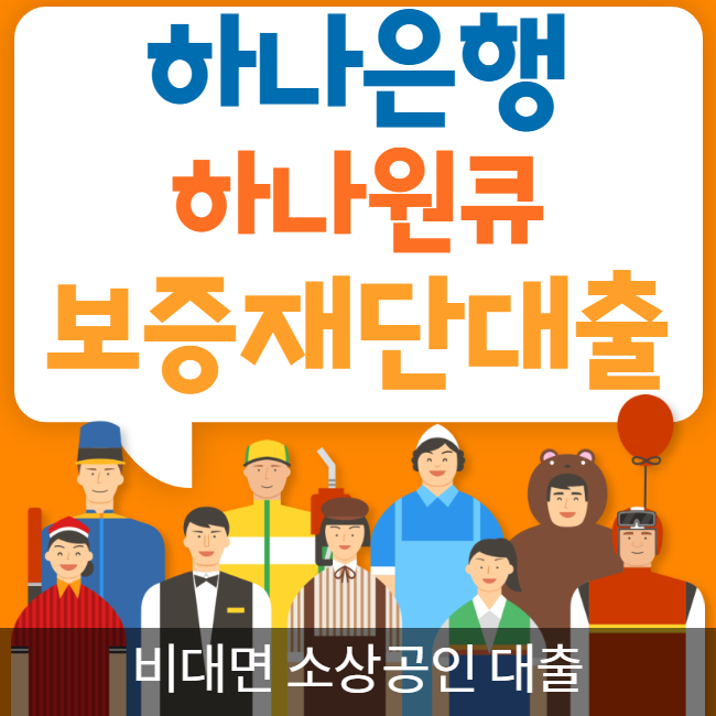 하나은행 비대면 소상공인 대출은 '하나원큐 보증재단 대출' 상품으로 하나은행과 지역신용보증재단이 서로 업무협약을 통해 개인사업자의 재단보증서 대출 전 과정을 디지털 비대면방식으로 구현한 모바일 전용 보증서대출 입니다.
