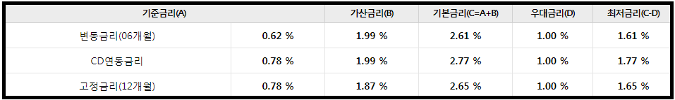 - 오픈뱅킹 가입고객 : 연 0.1%p (20.12월까지 한시적 운용)