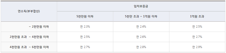 ③만 35세 미만, 연소득 2천만원 이하 청년이 전용면적 60㎡ 이하 & 보증금 5천만원 이하 주택임차시 0.5%p 우대금리 적용