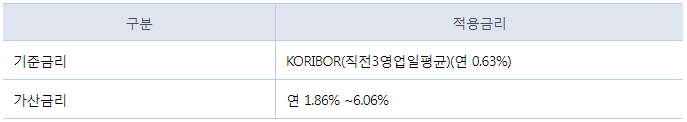 - 대출신청일, 동일기업 국민건강보험 또는 국민연금 가입기준 6개월 이상으로 확인되는 고객(이직, 합병 등 변동사항이 있을 시 신청 불가)