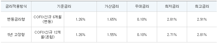 대구은행 주택담보대출 이자율(금리)에 대해서 알아보도록 하겠습니다. 이자율(금리)은 변동금리형의 경우 최저금리 연 2.81%~최고금리 연 2.91%로 정해지고, 5년 고정형일 경우 최저금리 연 2.71%~최고금리 연 2.81%로 정해지고 있습니다.