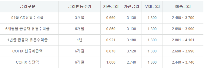 변동금리 적용시 최저금리 연 2.440% ~ 최고금리 연 4.101%로 정해지고 있습니다.