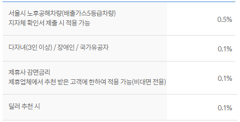 - 중도상환해약금률 : 고정금리대출 0.8%, 변동금리대출 0.7%