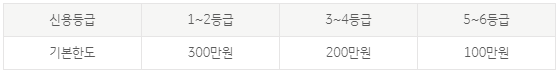 *대출한도는 신용평가 결과에 따라 차등 적용됩니다.