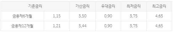 이때, 적용금리는 가산금리 및 우대금리가 가감되어 적용되며, 대출 신청자의 신용조건, 대출조건(상환방법, 자금용도 등), 은행거래에 따라 달라질 수 있습니다.