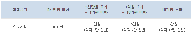 - 인지세 : 대출금 5천만 원까지 면제(비과세)