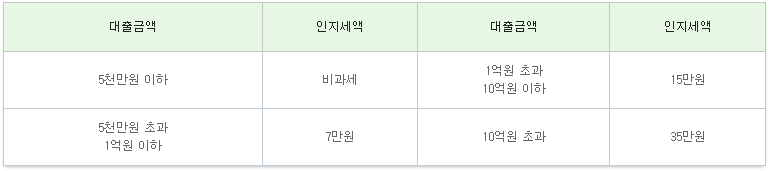 - 인지세 : 각 50%씩 은행과 고객이 부담