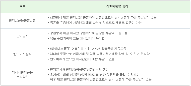 - 거치식원리균등분할상환: 최대 5년(거치기간 1년)